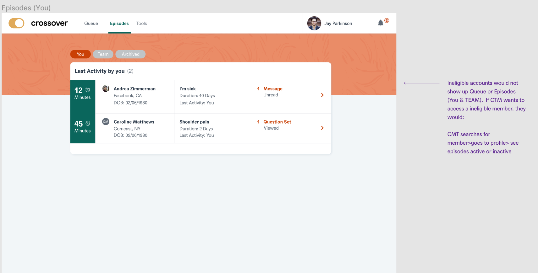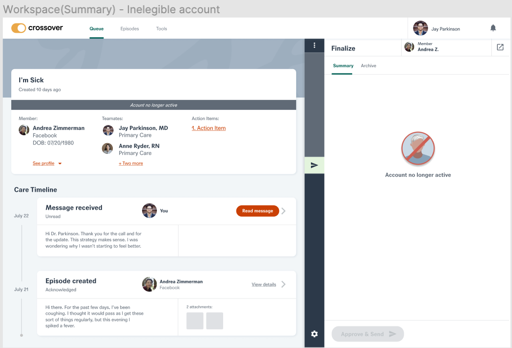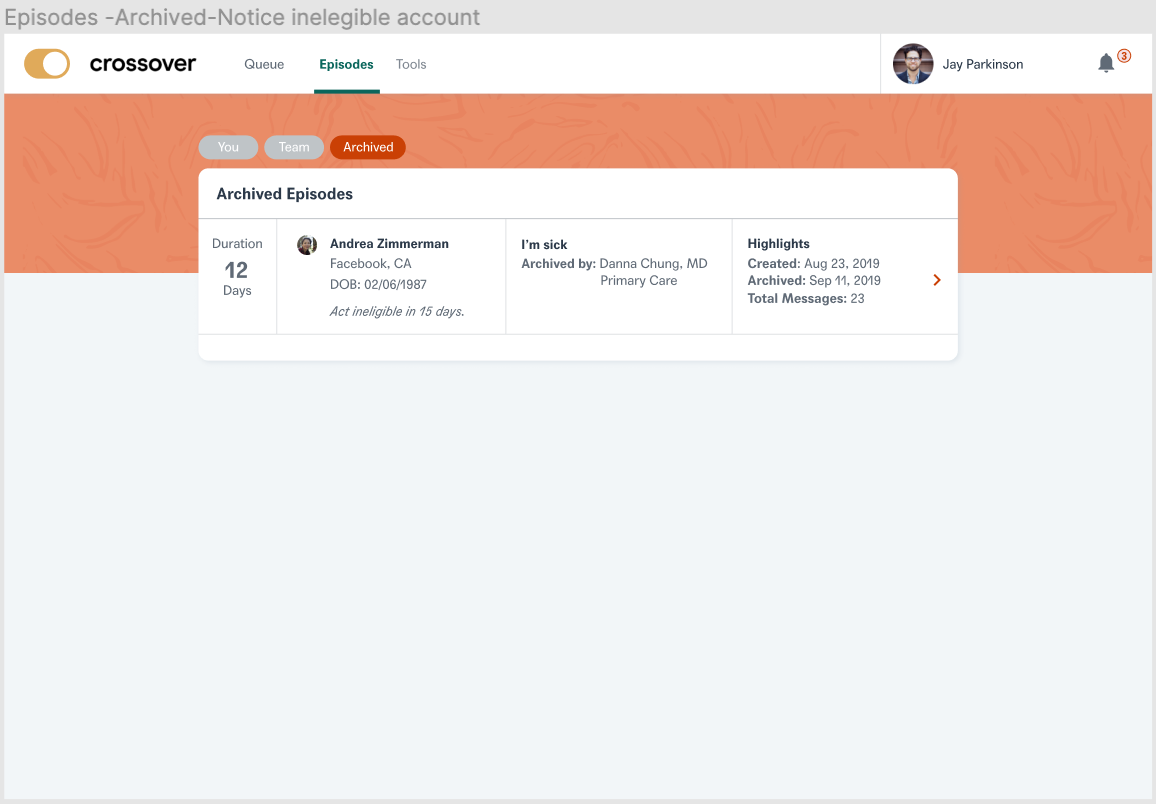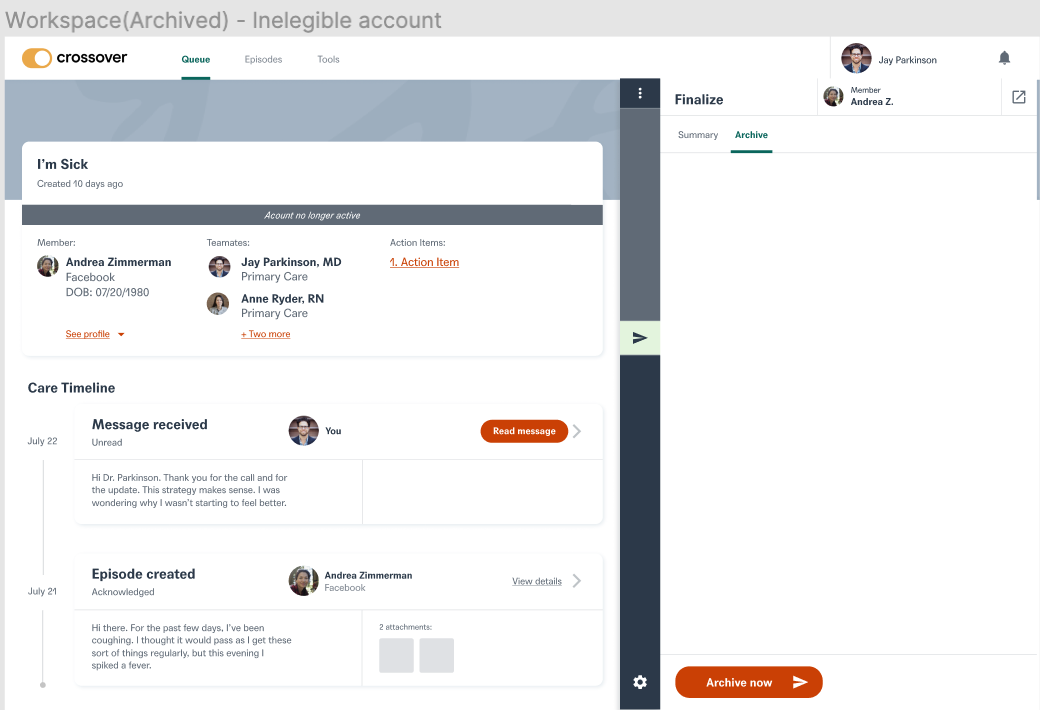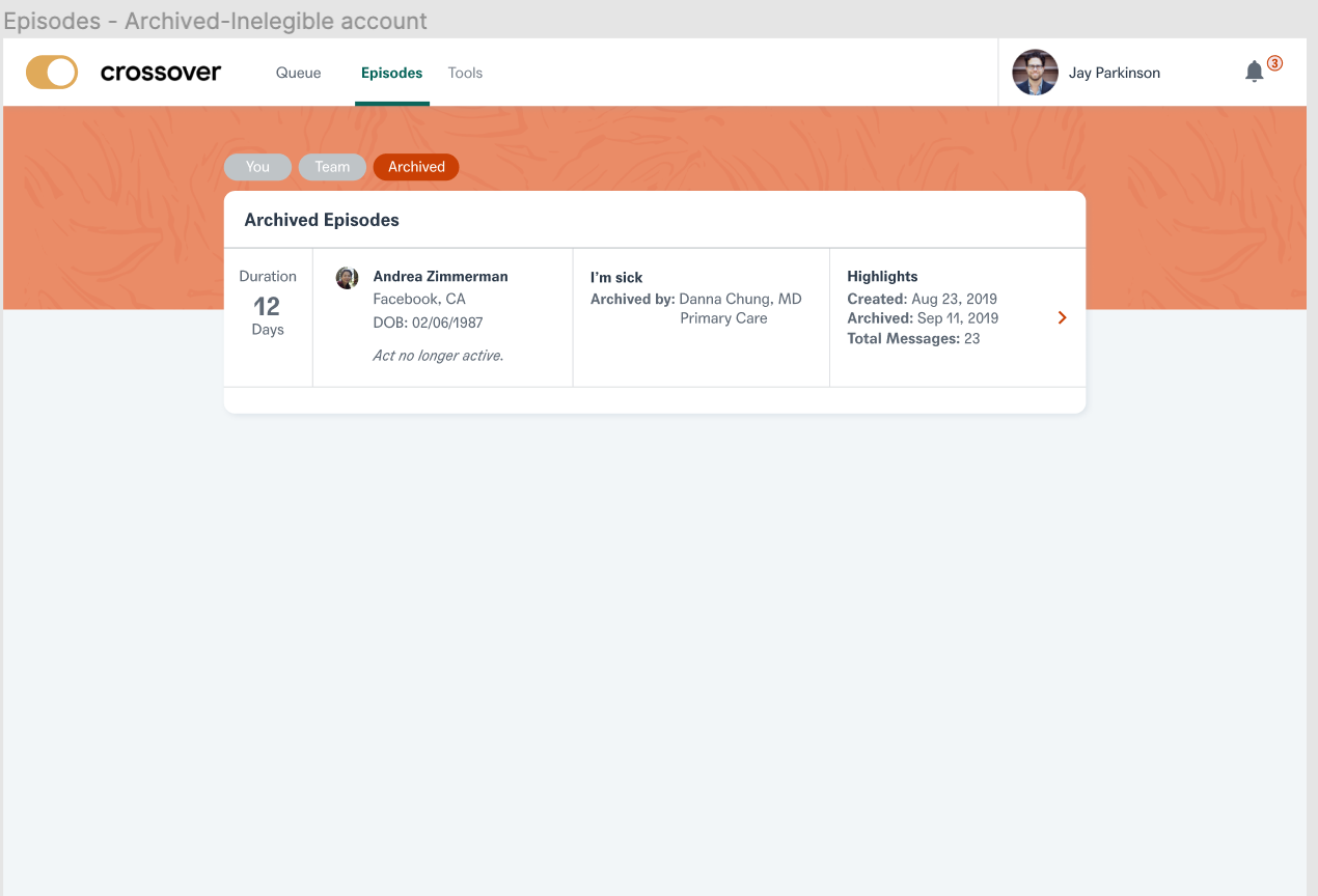 As ethical healthcare professionals, we need to guarantee Members do not have active care terminated suddenly and unexpectedly. The other pain point we addressed was that former members should be given read only access in order to access previous medical records at Crossover. This will essentially help the members to keep a track of their past health records and also ensure that they do not have any ability to seek new care from crossover team members.