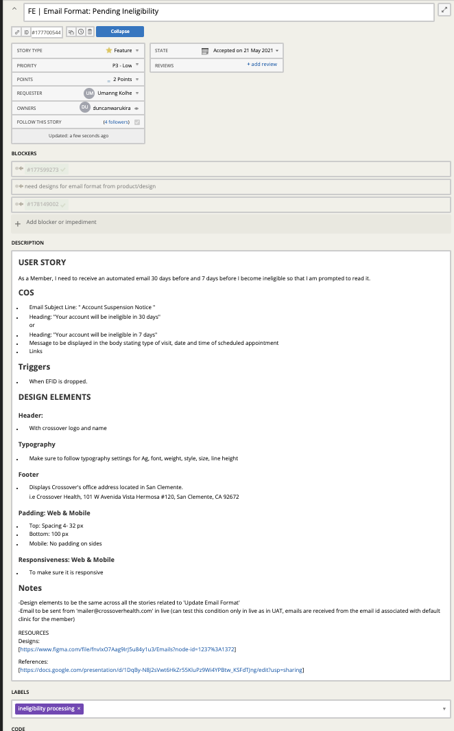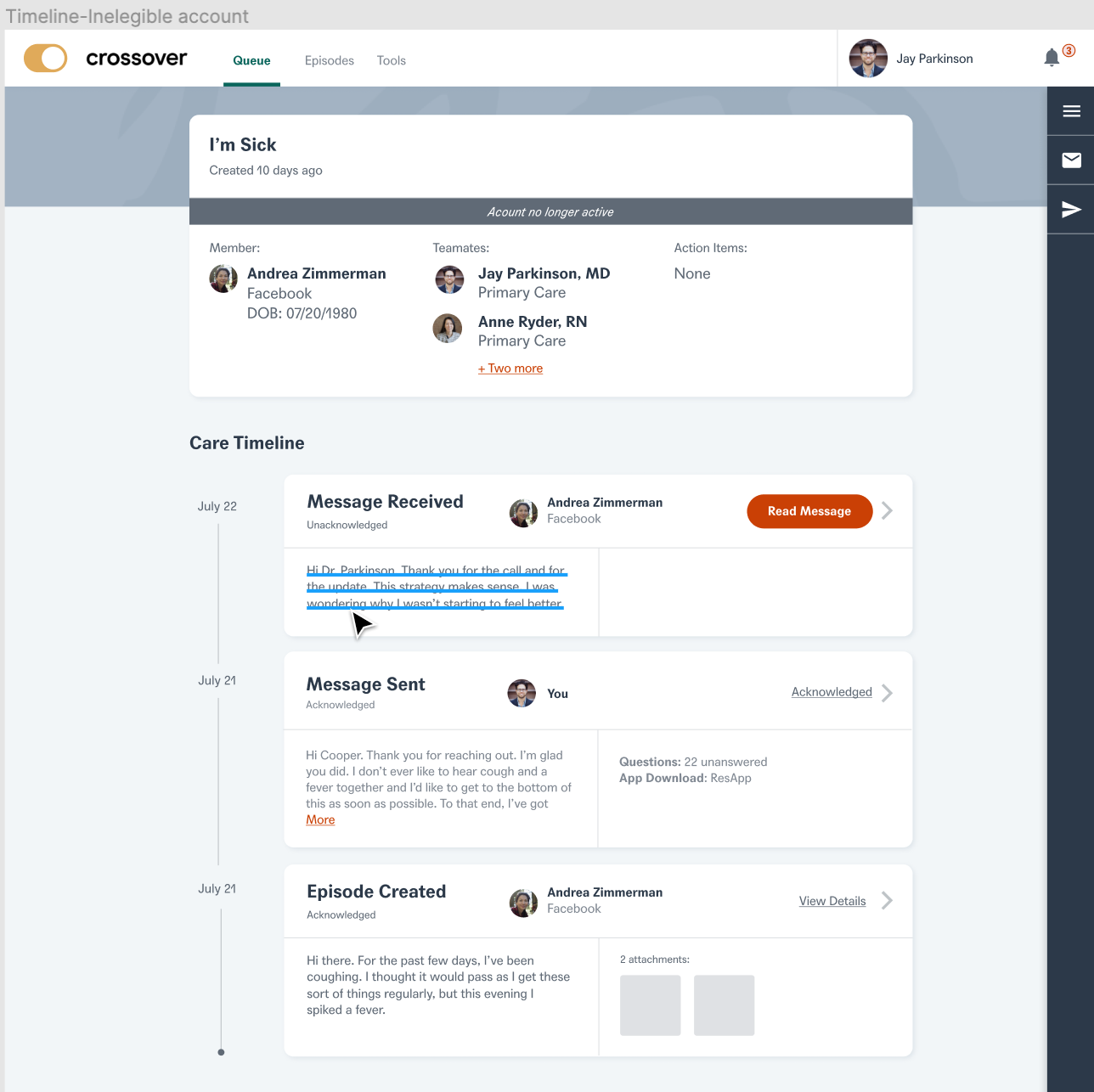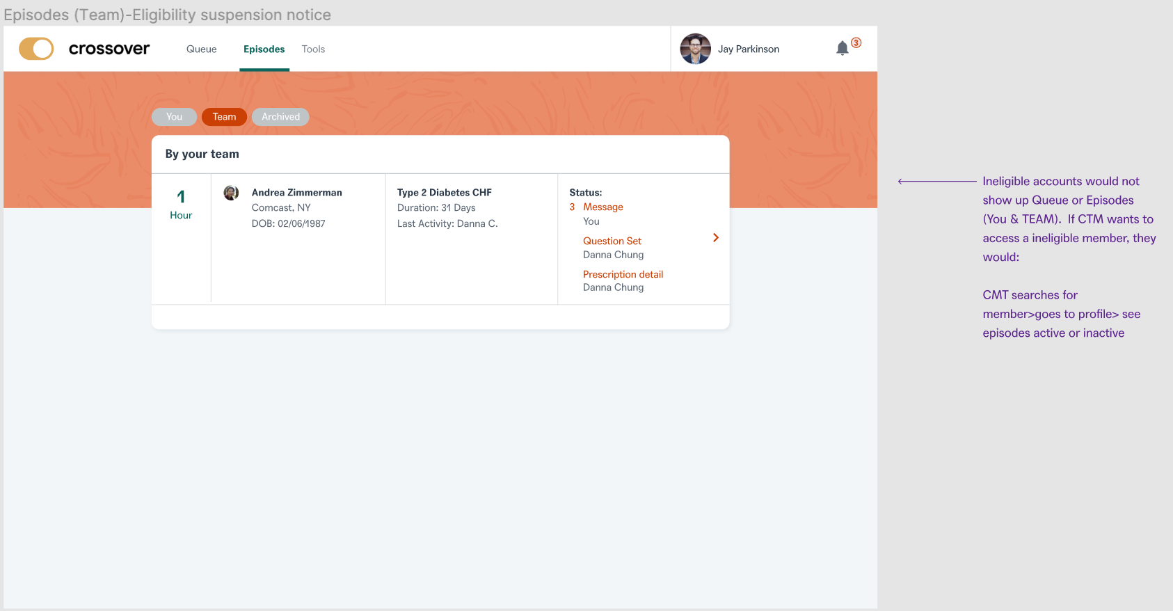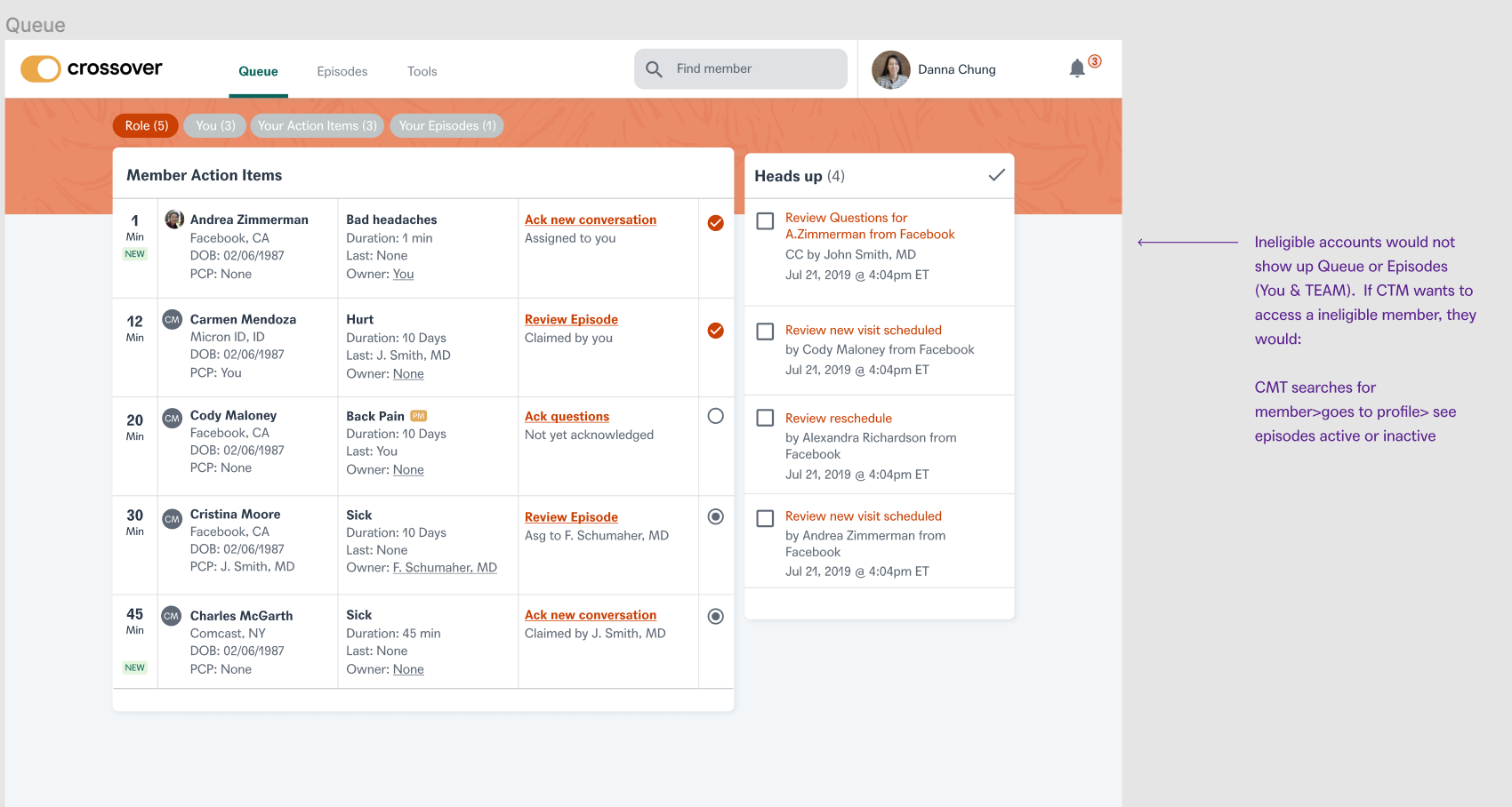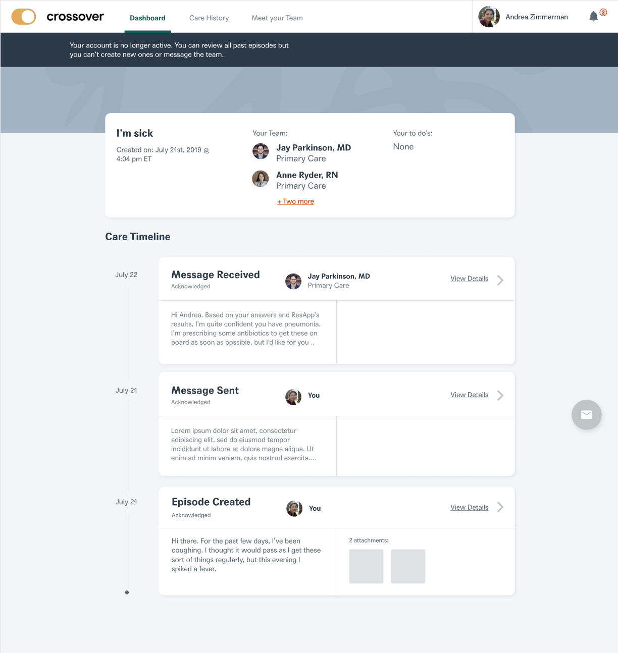 As ethical healthcare professionals, we need to guarantee Members do not have active care terminated suddenly and unexpectedly. The other pain point we addressed was that former members should be given read only access in order to access previous medical records at Crossover. This will essentially help the members to keep a track of their past health records and also ensure that they do not have any ability to seek new care from crossover team members.