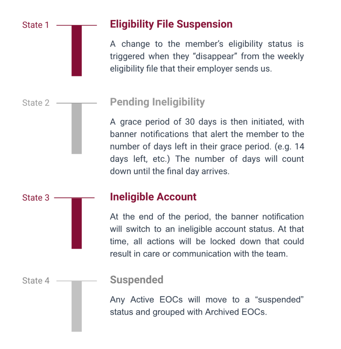 Solution : To achieve this goal smoothly and efficiently when a member is off-boarded, we made revisions and amendments to the Member and Care Team Member web pages on the platform to designate the ineligible status to a certain member.