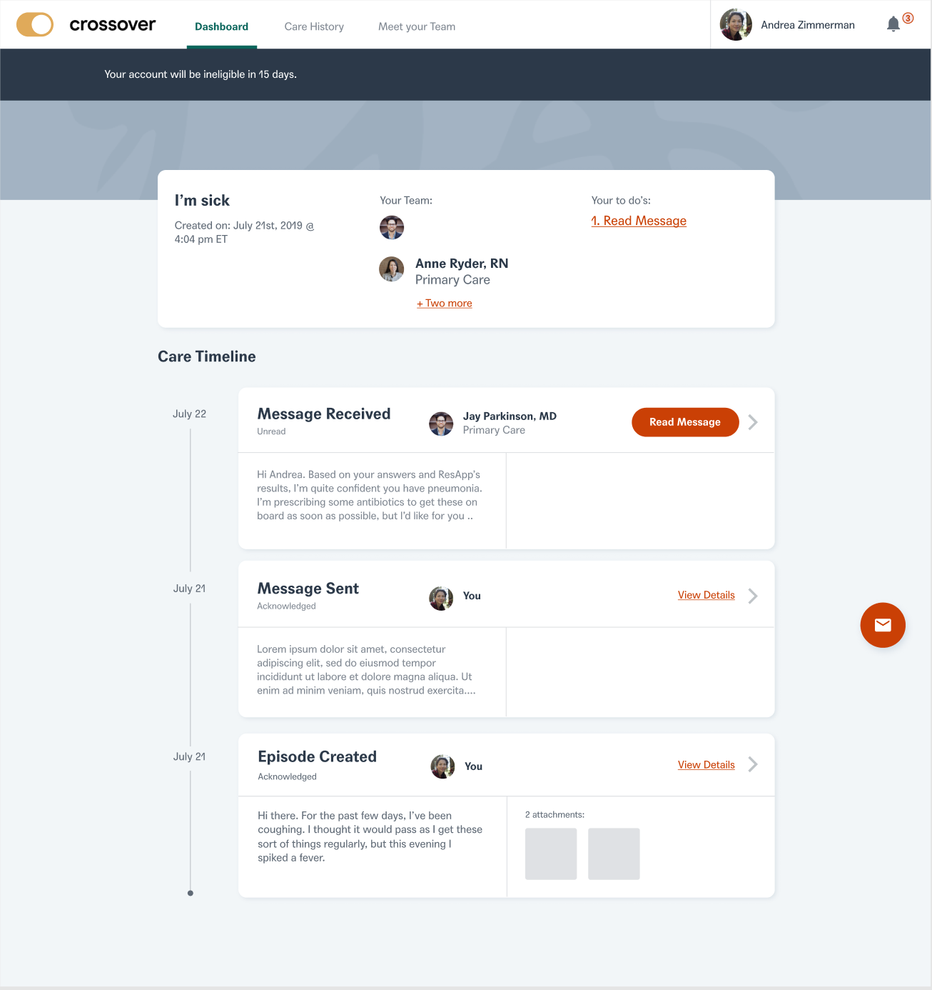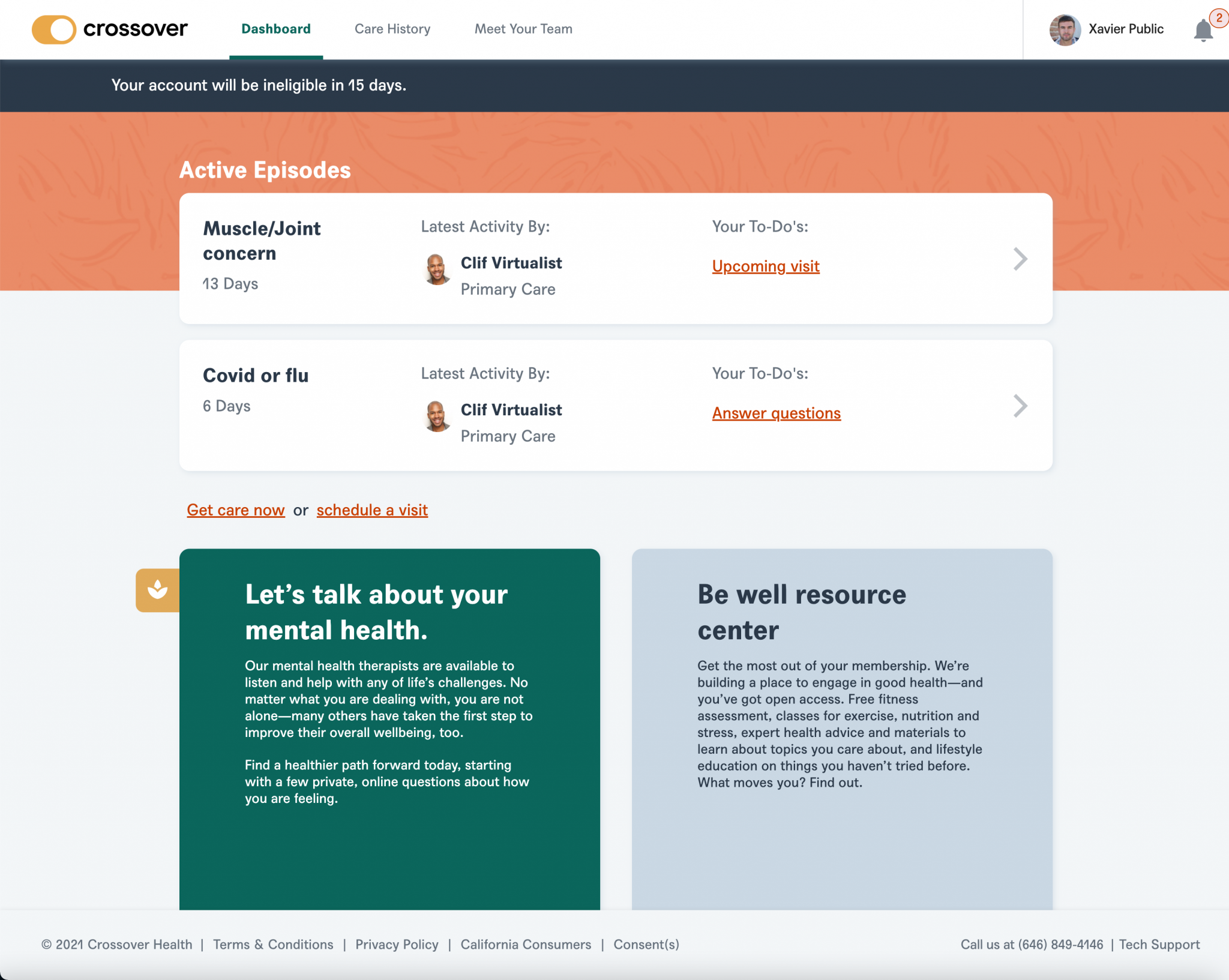 "Member: XY no of days left to seek care"